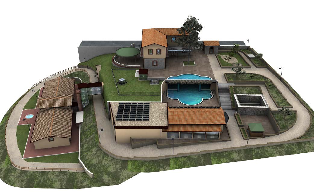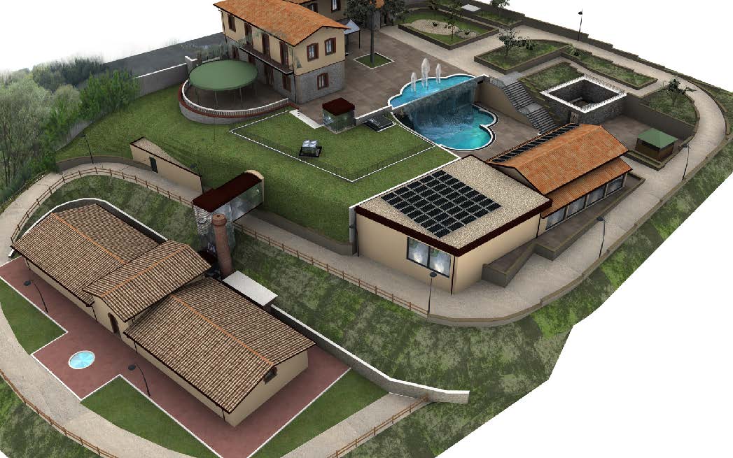 • Piscine: piastra in c.a. sp. 30 cm, pilastri Ø50 cm, platea fondazione 50 cm.
